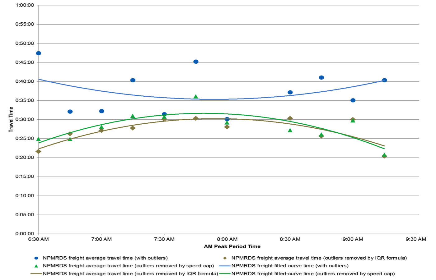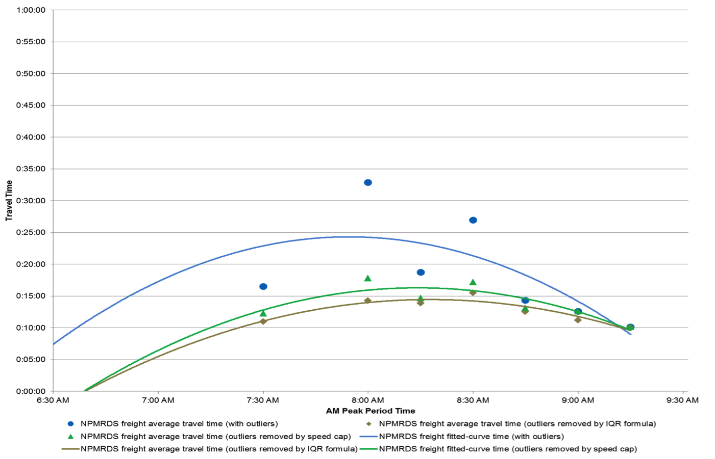 Comparison Between the Two Outlier Removal Methods for the NPMRDS Freight-Only Dataset 15-Minute Increments Between 6:30 AM and 9:30 AM