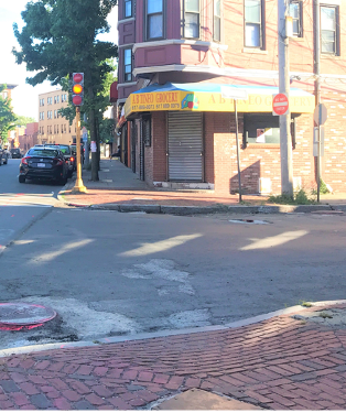 Sidewalks are present throughout the intersection on both sides of the roadways, all exceeding the American with Disabilities Act (ADA) minimum width of five feet. Staff did not observe bicycle facilities along either roadway at this intersection in August 2020, but Chelsea has since added dedicated bike lanes and sharrow markings to Washington Avenue and Broadway from 6th Street to 3rd Street using MassDOT’s Shared Streets & Spaces funding.