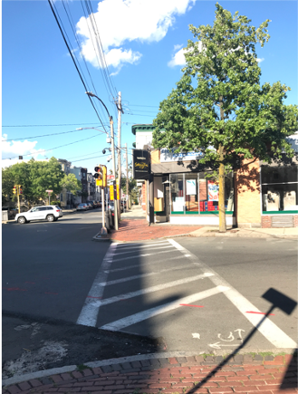 Northeast Corner of Intersection: Pedestrian Refuge Island
