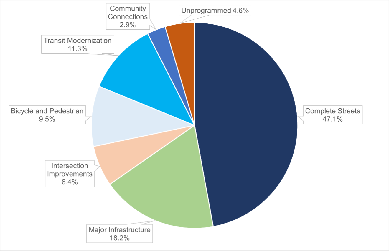 O TIP de 2024–28 do ano fiscal inclui US$ 4,05 bilhões em investimentos de trânsito pelas autoridades de trânsito que apoiarão o estado de bom estado de conservação, modernizarão os sistemas de trânsito e aumentarão o acesso ao trânsito. Além disso, a partir do ano fiscal de 2025, a MPO alocará US$ 6,5 milhões de seus fundos anuais da Meta Regional para seu novo programa de investimento de Modernização do Trânsito. Este programa visa aproveitar os investimentos feitos por meio do Programa de Trânsito, usando uma parte do financiamento do Programa Rodoviário para atender às necessidades não atendidas do projeto de trânsito na região. A MPO já começou a financiar projetos distintos por meio deste programa antes do ano fiscal de 2025 com base em um excedente de financiamento disponível no ano fiscal de 2024, conforme detalhado abaixo.