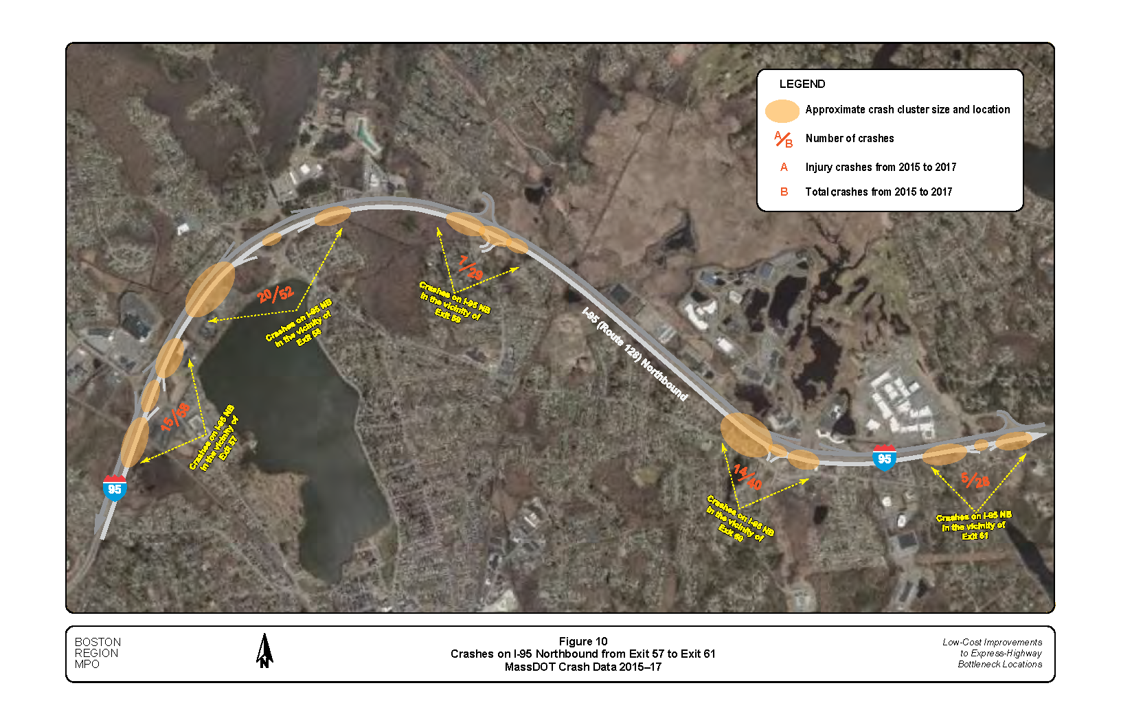 Crashes on I-95 Northbound from Exit 57 to Exit 61: MassDOT Crash Data 2015–17
