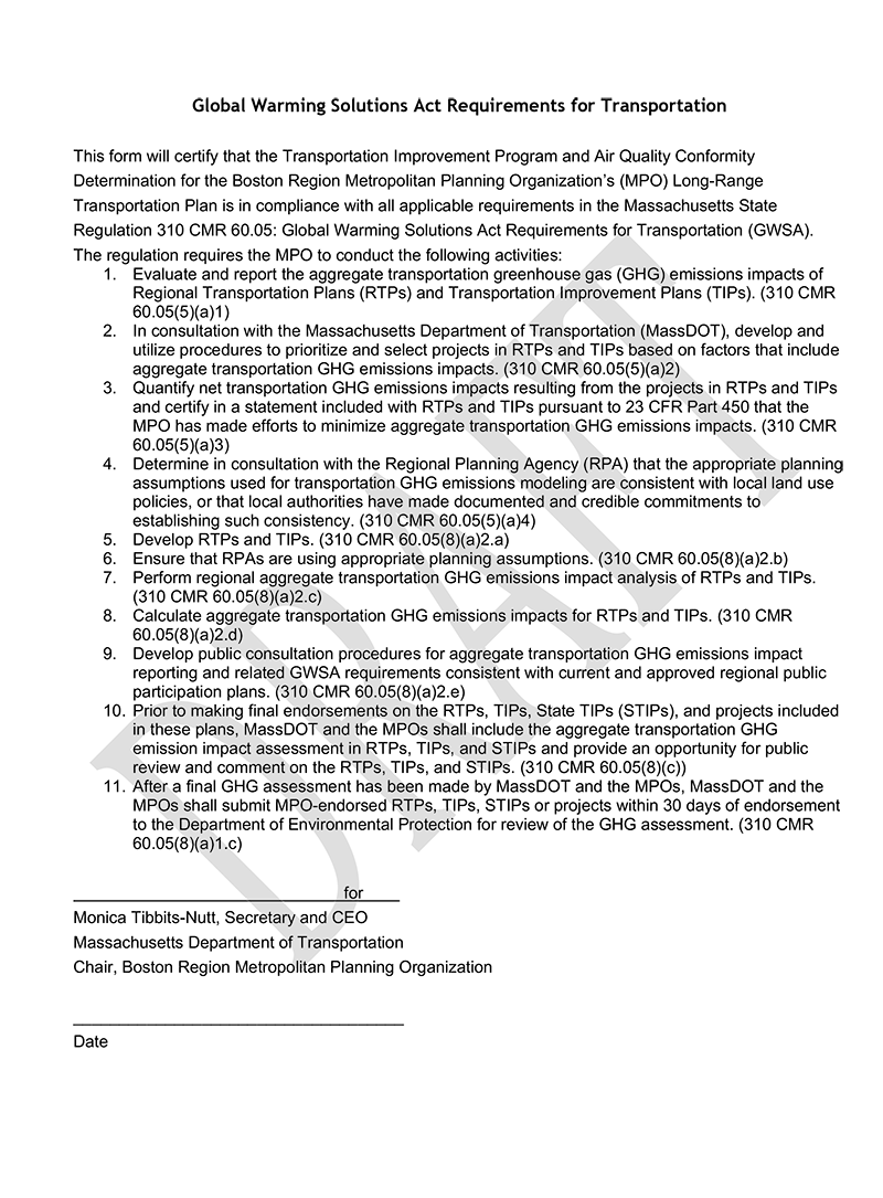 The requirement to perform a conformity determination for carbon monoxide for the city of Waltham has expired. On April 22, 2002, the EPA classified Waltham as being in attainment for CO emissions. Subsequently, an EPA-approved CO limited maintenance plan was set up through the Massachusetts SIP to ensure that emission levels did not increase. While the maintenance plan was in effect, past TIPs and LRTPs included an air quality conformity determination against a “budget test” (using “hot spot” analyses as needed at the project level) for Waltham. As of April 22, 2022, however, the 20-year maintenance period for this CO area expired and transportation conformity is no longer required for this pollutant in this municipality. This ruling is documented in a letter from EPA dated April 26, 2022.